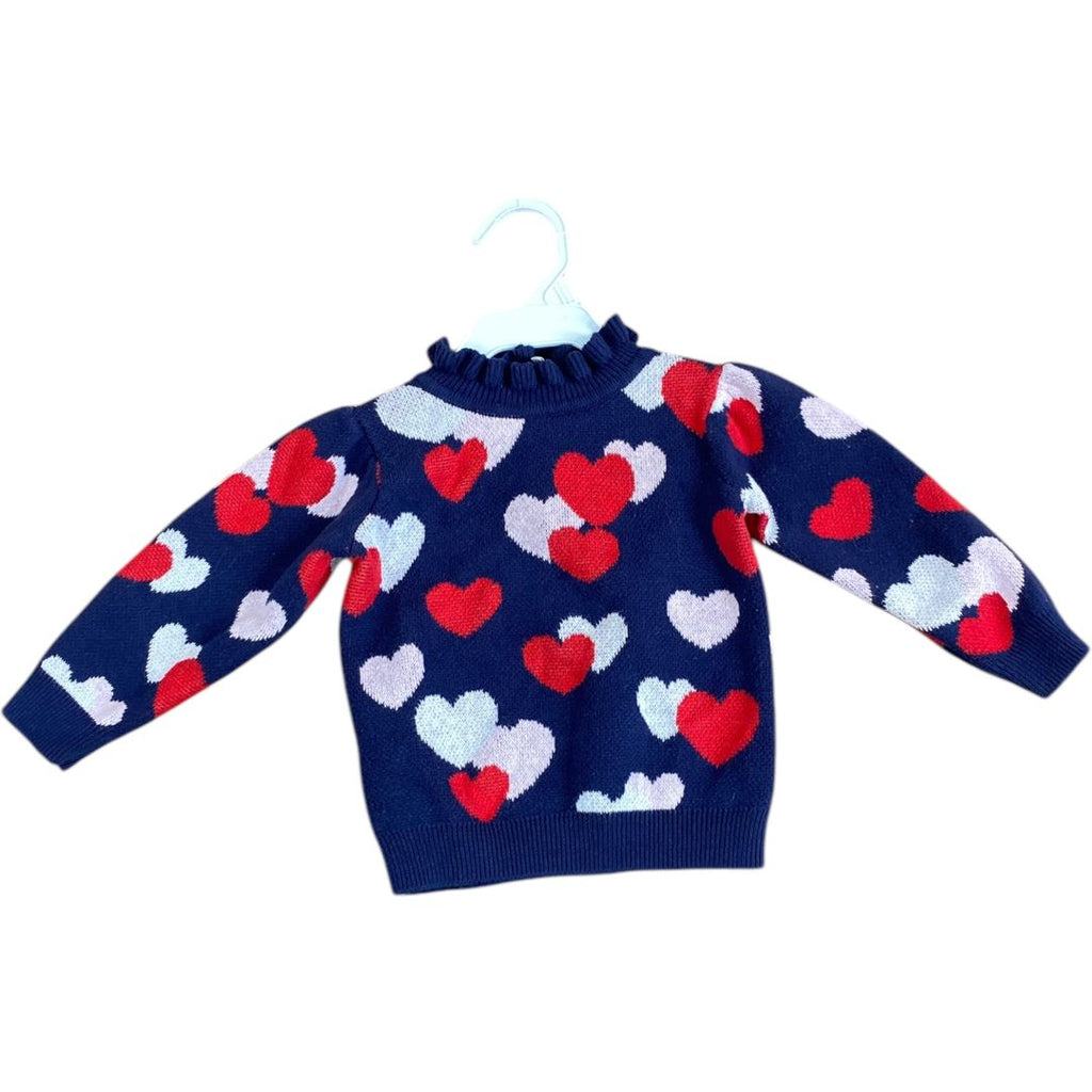 Janie & Jack Navy Heart Print Sweater (12/18M Girls)